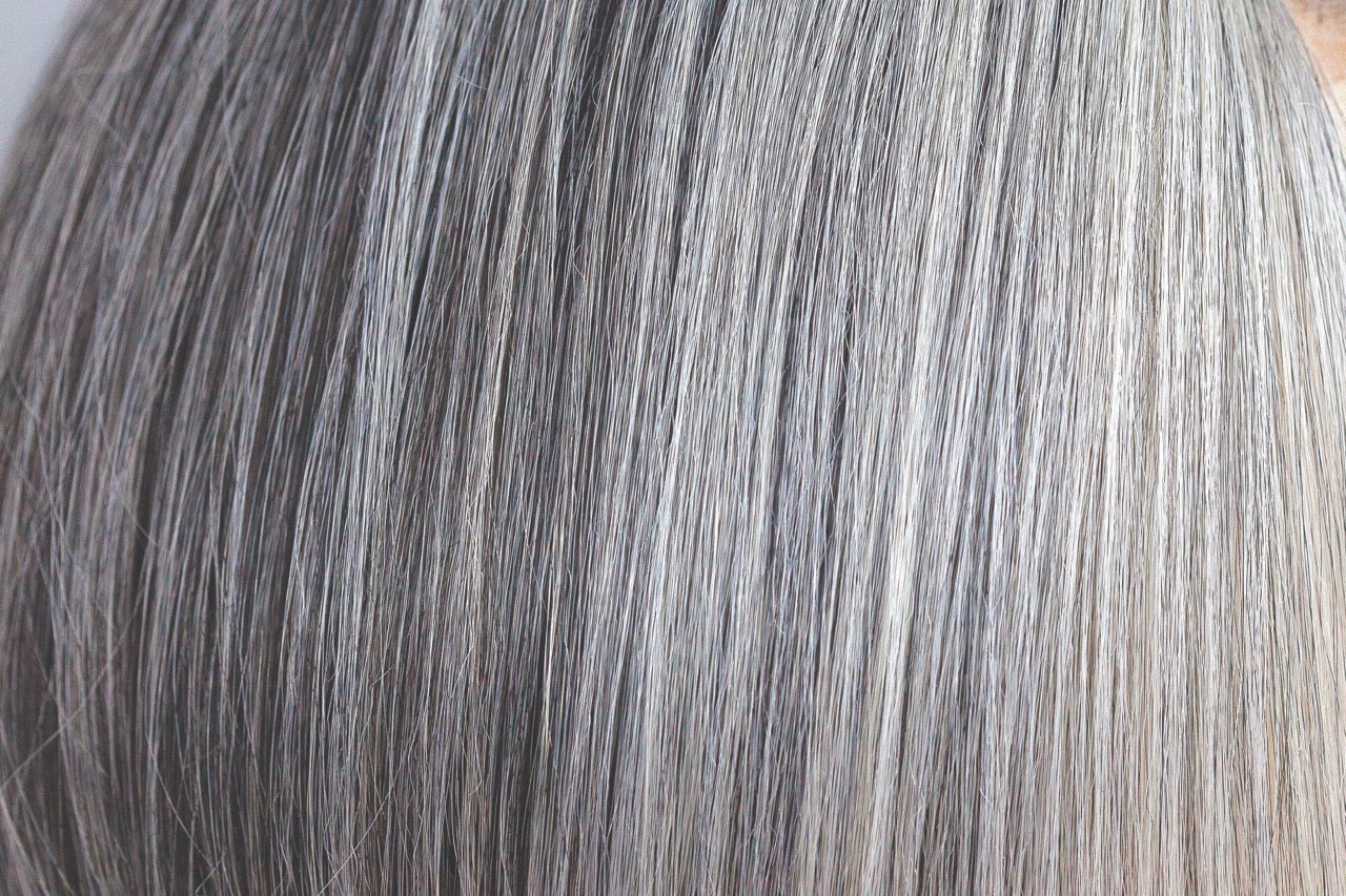 Salt & Pepper-MR | A perfect 50/50 blend of deep charcoal grey and light Alabaster Grey tones give a striking yet very natural color, off set with the MR which stands for Micro root, this very small regrowth rotted area gives definition and depth.