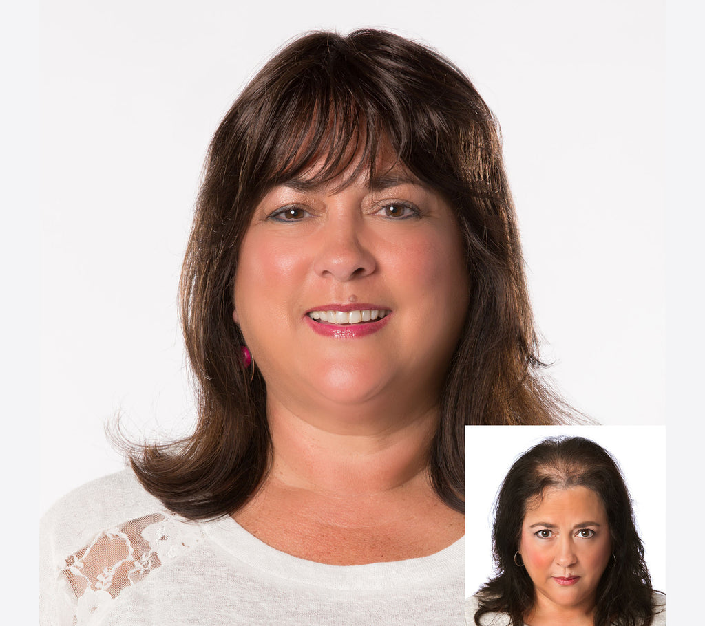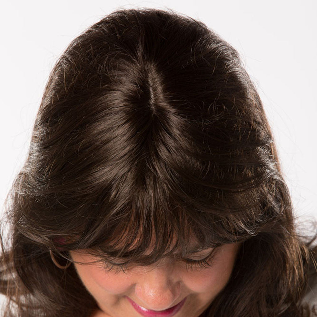 The Toni Brattin Faux Filler Ultimate Straight Topper Features Complete Crown Coverage and is the Perfect Accessory to Hide Thinning Hair Problem Areas by Adding both Volume and Length. The Faux Filler Ultimate Straight Topper is the First Faux Filler to Incorporate a Front Bang into the Hairpiece for a Virtually Undetectable Natural Look. Secured with Pressure Sensitive Snap Clips, the Faux Filler Ultimate Straight Topper Blends with your Natural Hair in both Coverage and Style-ability. Looks and Feels like Natural, Healthy Hair.