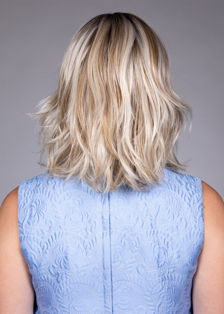 Butter Pecan-R 9/27/613+6 | Butter Pecan Rooted is a warm, inviting blonde blend with a golden-beige base swirled with soft, buttery highlights and light caramel lowlights. The “rooted” effect adds a slightly deeper, natural-looking root with a combination of medium and dark brown and blonde—creating depth, dimension, and a sun-kissed appearance. The mix of creamy warmth and subtle contrast gives it a rich yet natural look, reminiscent of the dessert it’s named after.