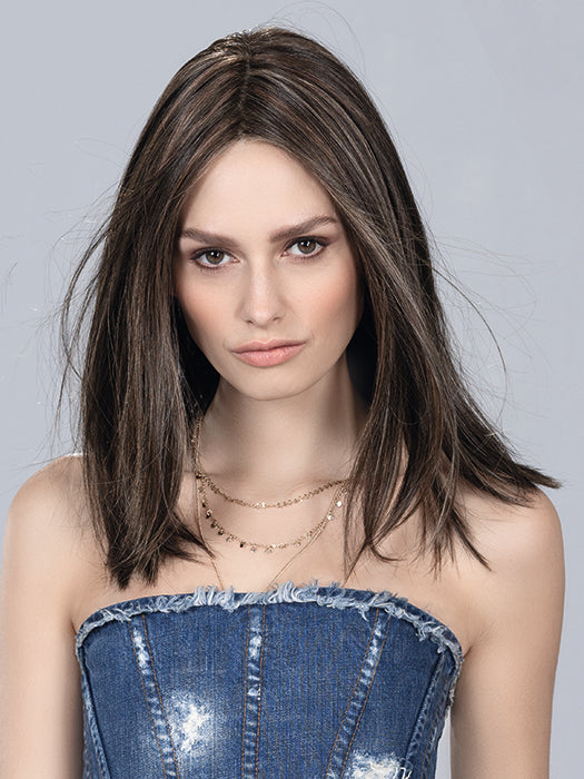 Drive takes it to the next level with a special heat resistant fiber that allows you to change up your look from straight or with beautiful waves. This classy look has a hand-tied middle part and an invisible lace front that looks natural and allows you to wear it pulled back and off the face. For added comfort, the cap is designed with micro wefting that is breathable and cool for all-day wear. The extra overlay of mesh in the crown area helps for those with a more sensitive scalp. Drive is from the Perucci Collection by Ellen Wille.