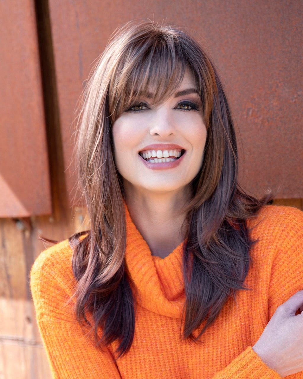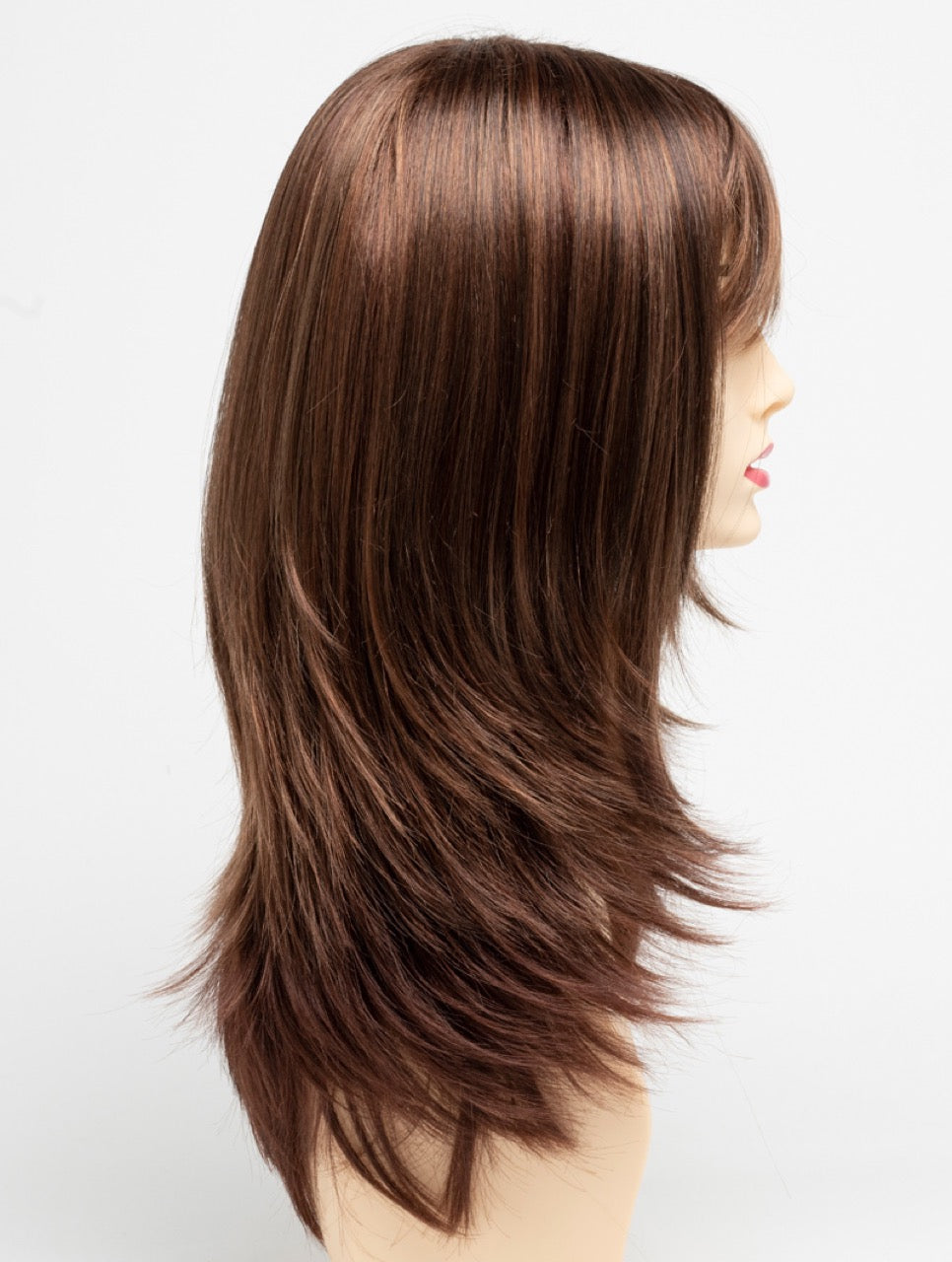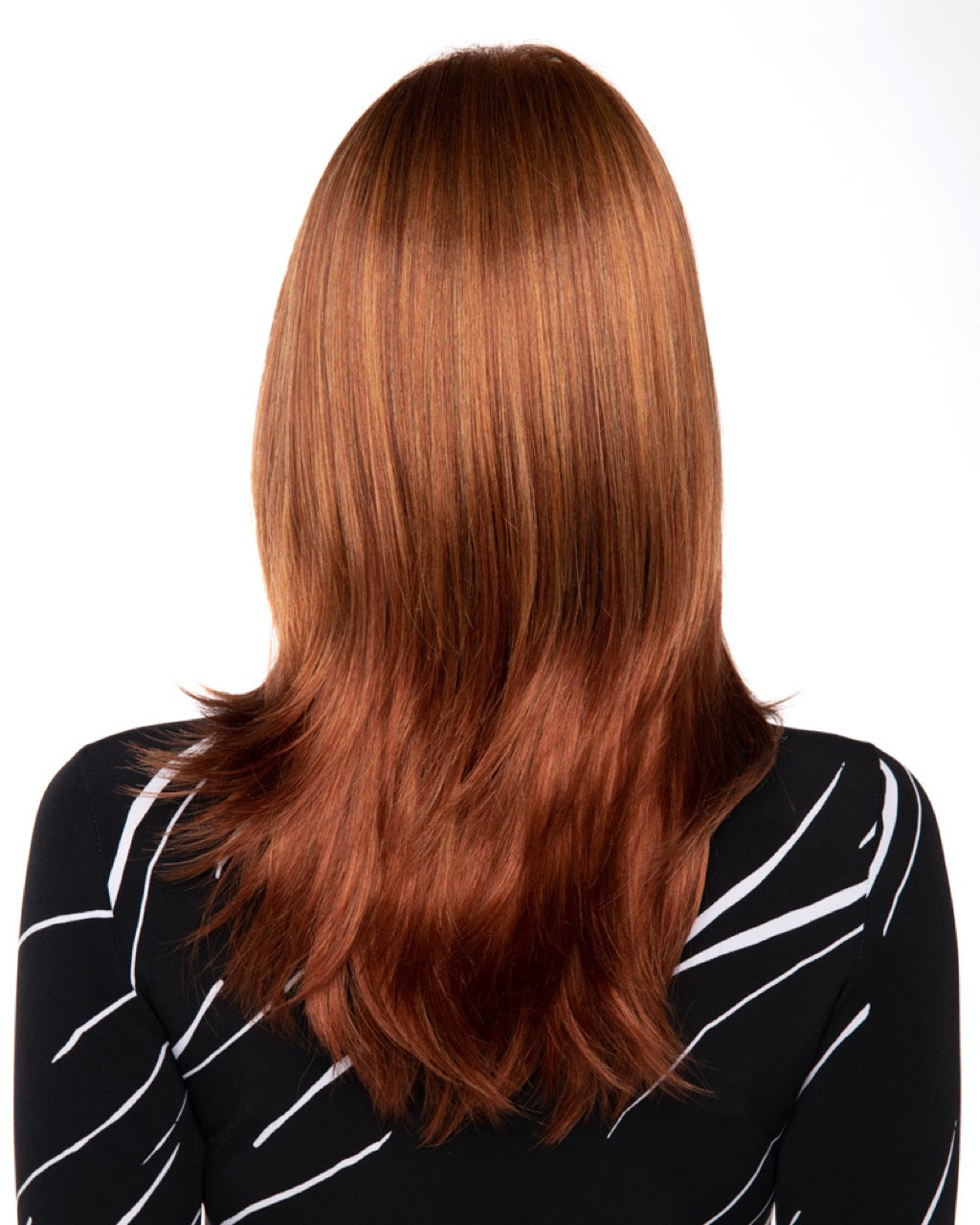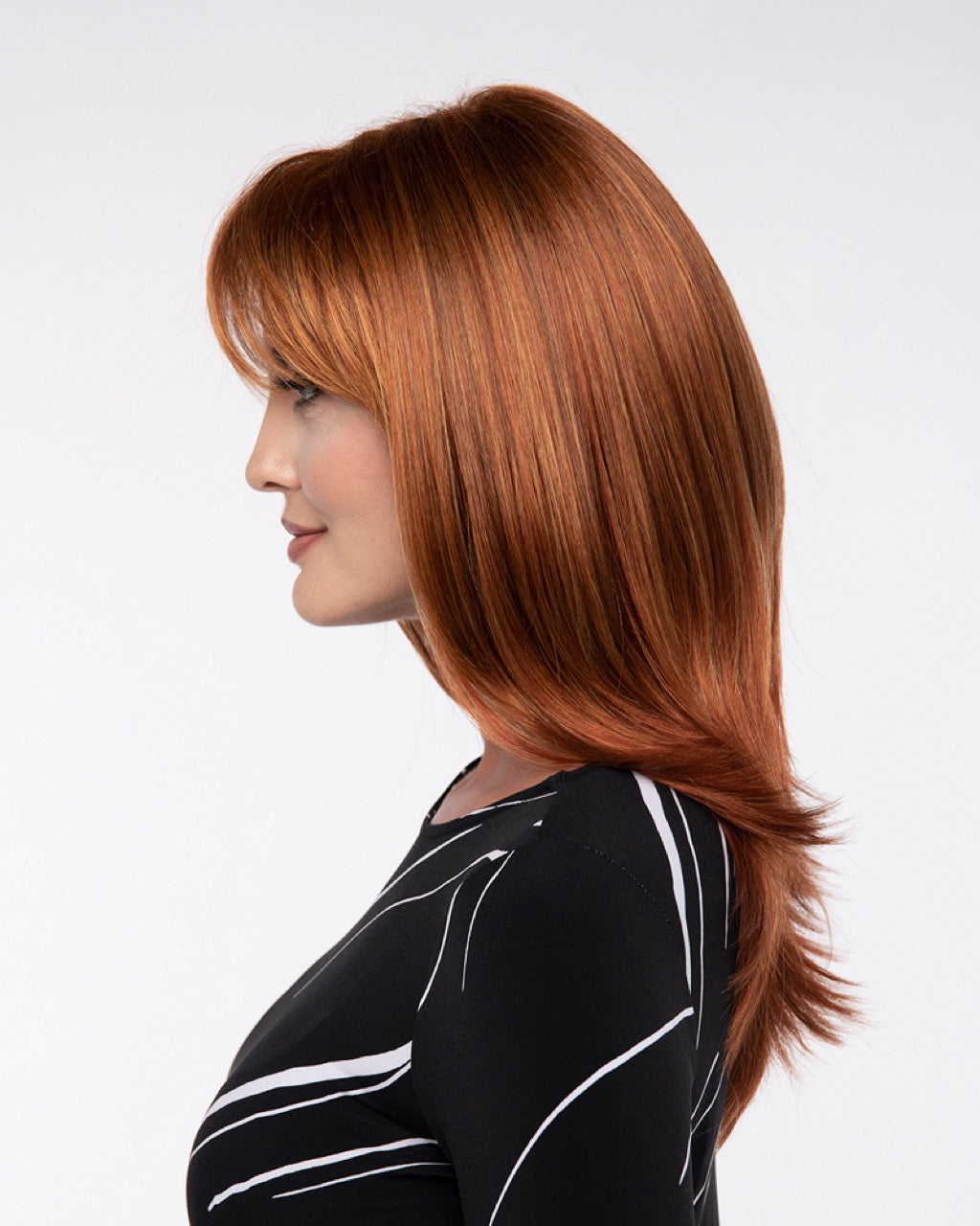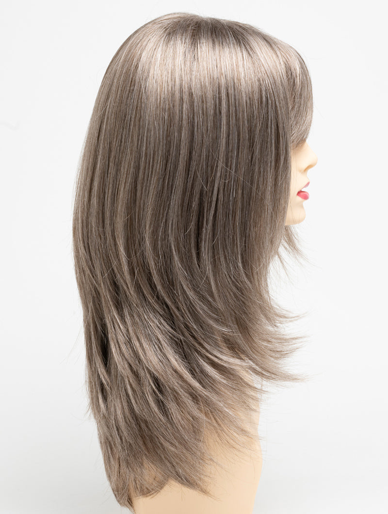 Smooth texture adds a sleek silhouette to this long-layered style with bangs. Kates open-top construction provides a weightless feel and fit, and the weightless layers add modern movement while maintaining a strong perimeter.