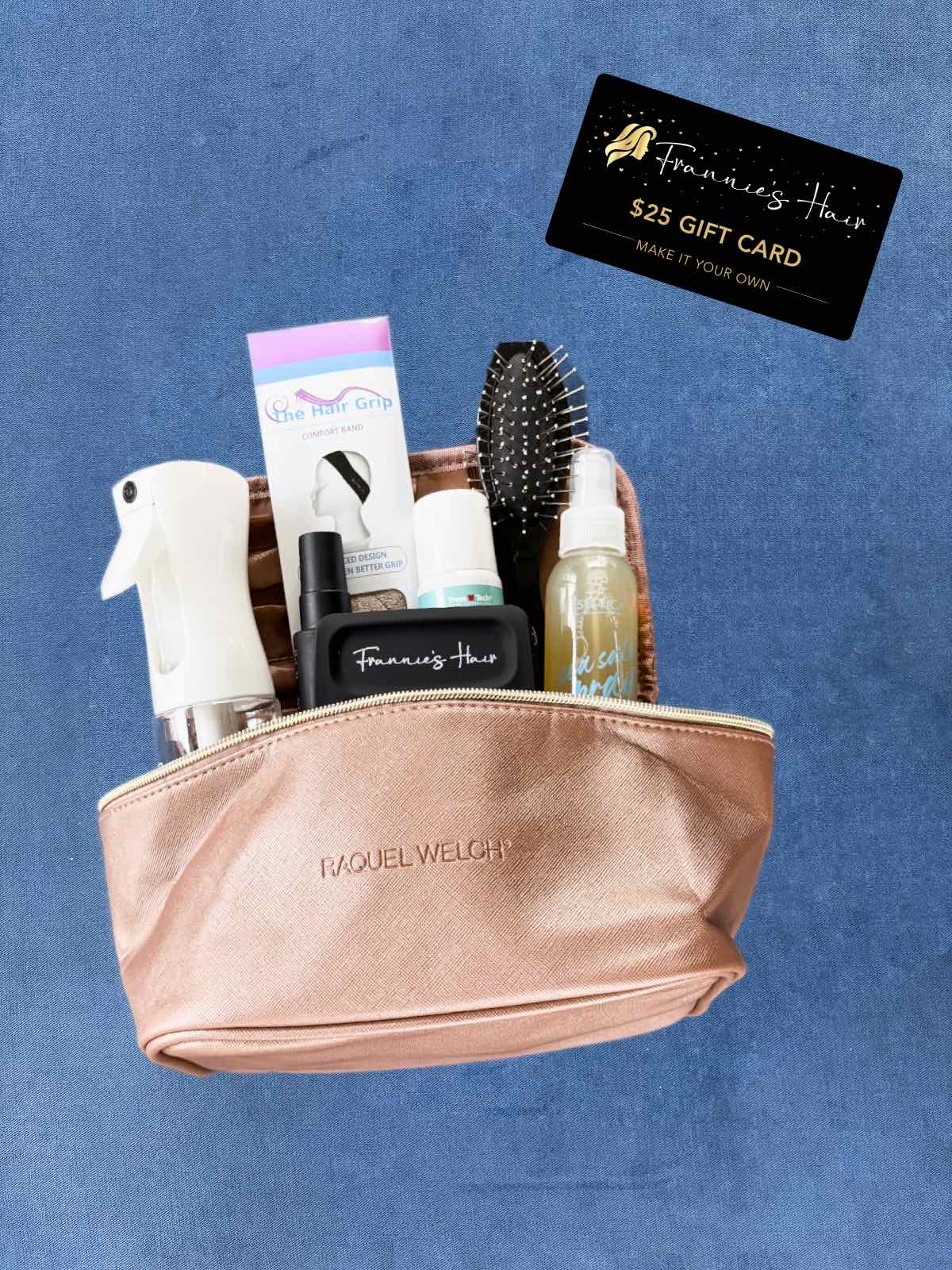 'Tis the season to look absolutely stunning! Your wig is more than just hair—it's your confidence, your style, your signature look for every holiday gathering. The Holiday Glam Kit gives you everyday essentials for styling, wearing, and caring for your wig throughout the festive season and beyond. This kit includes the products listed below, and can be bundled with a Frannie's Hair Gift Card for extra value!