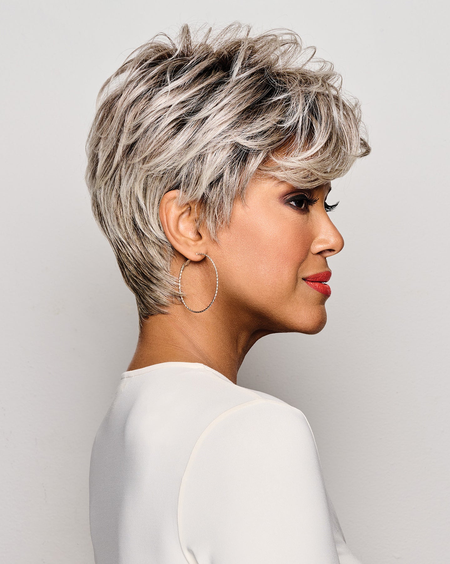 A full-body layered short cut that’s full of styling possibilities. Named SIMONE meaning “hear” or “listen” to recognize how this sophisticated style answers your requests for a versatile style with ample volume at the crown, a tapered nape and wispy fringe.