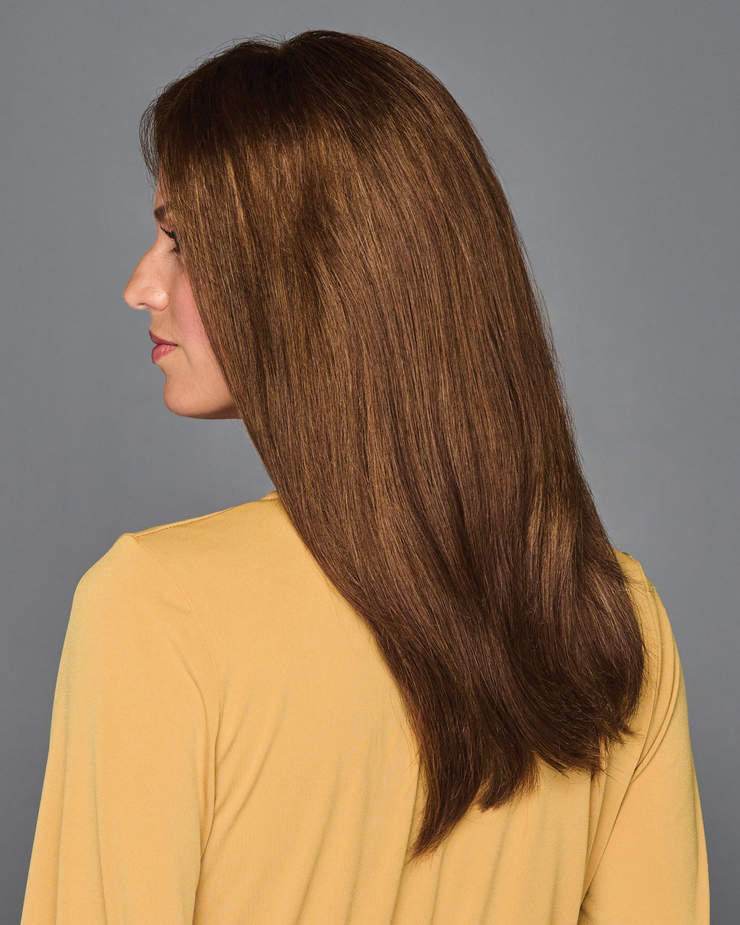 Upgrade to this top-class topper! Our fan favorite Top Billing top piece is now available in luxurious 100% human hair, a glam 16” length and a wider base to provide confident coverage for all levels of hair loss.