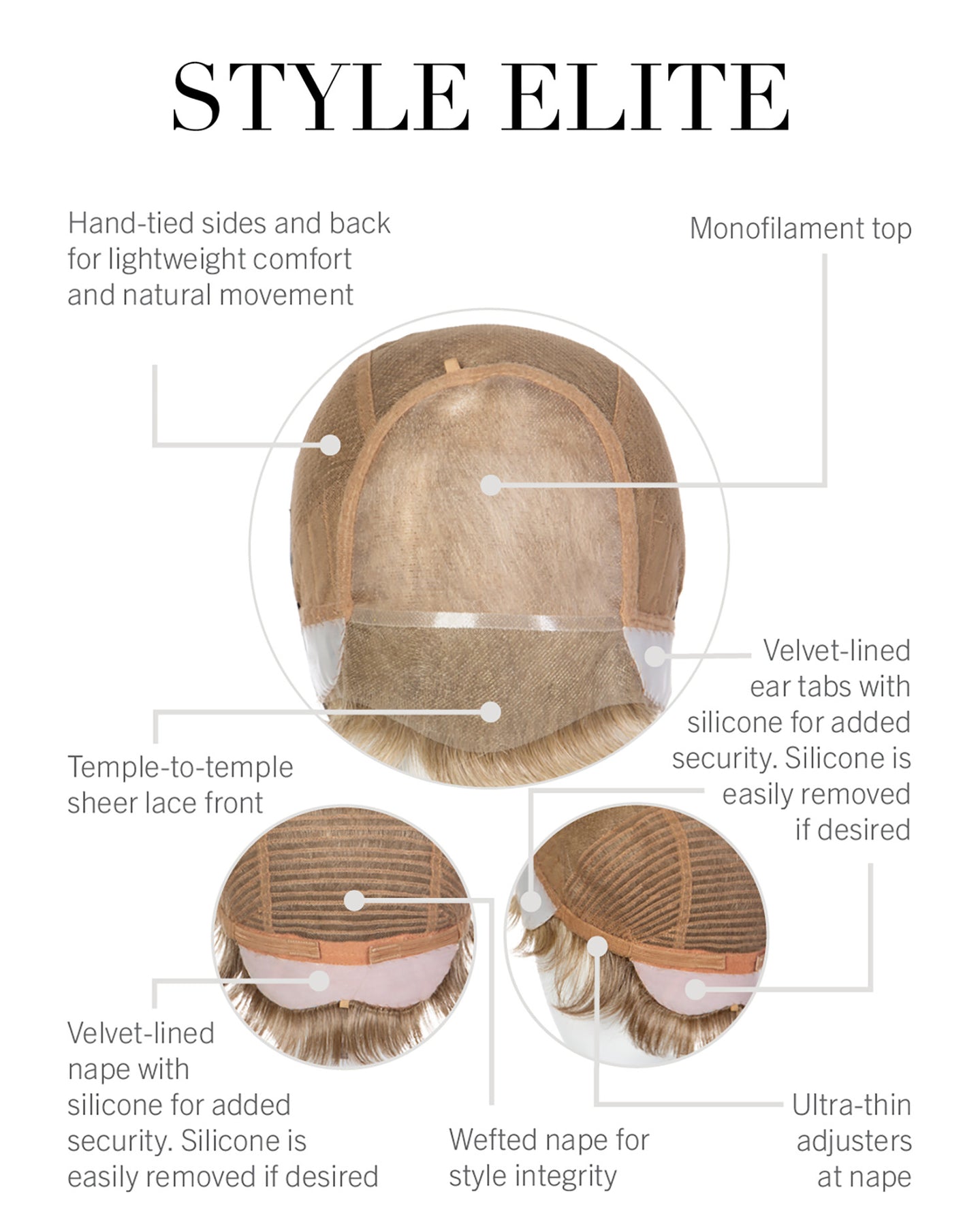 Upgrade your Style! This ready-to-wear short look is now available with a full monofilament top plus hand-tied sides and back. The elevated construction is lighter, lies flatter against the head and gives you greater styling freedom.