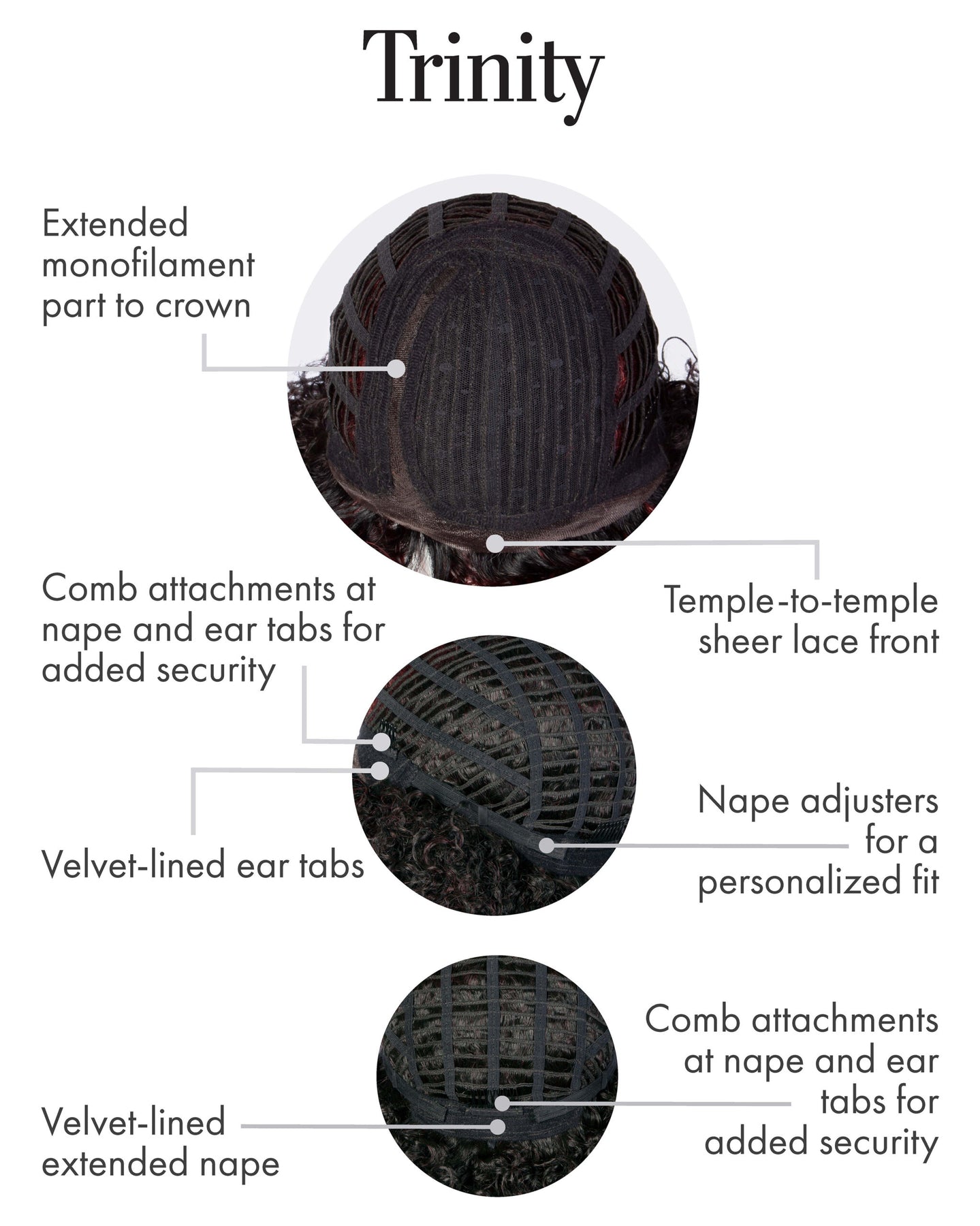Get ready to get your groove on with TRINITY. This voluminous crown of coiled curls has an extreme, off-center parting to let you express your individuality with pride. The full rounded shape plays a starring role for evening looks or anytime you crave statement-making style.