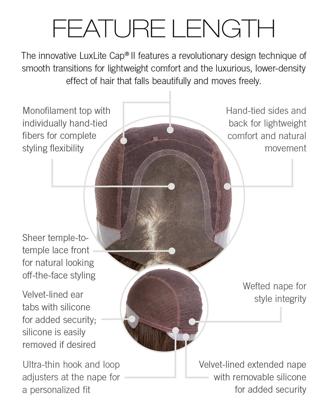 I'm in love. I've been experimenting with wigs for the past 2 years. I finally found one that's totally right for me. It's Cruise Control by Raquel Welch in Iced Cafe Latte! I love that it's partially hand-tied and the fibers are so silky. Being overall straight and heat friendly makes it super easy to maintain. The length just barely touches my shoulders. Super easy to maintain and a wig that I wear daily. Feels so good!