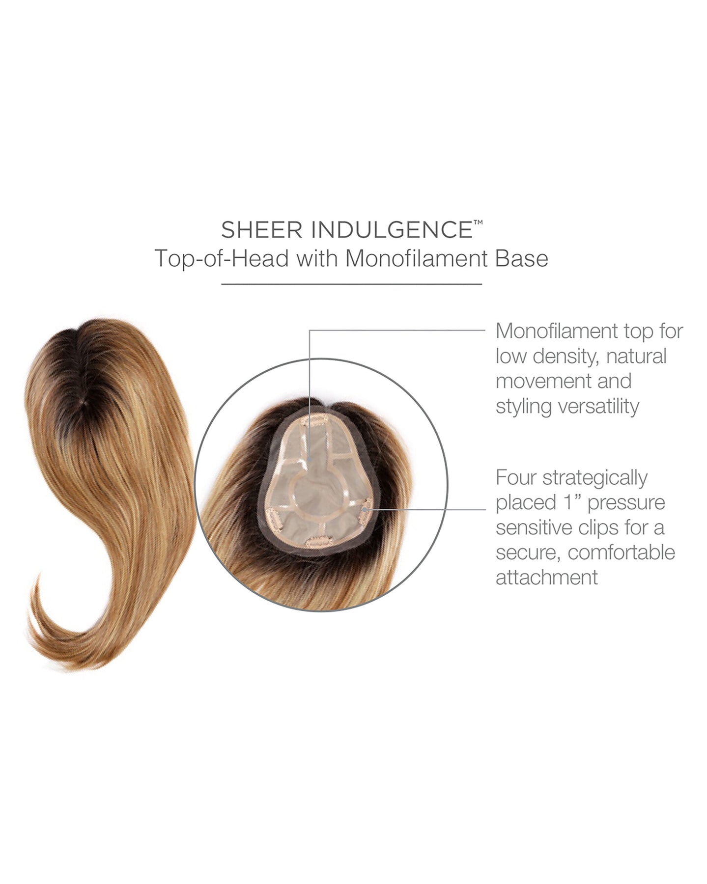 The pear-shaped base of this elegant topper lets you position the smaller or wider end as needed to appropriately conceal the area of hair loss. A sheer lace border lies flush to the head with no tell-tale edge. Our favorite feature? The soft, silky smooth extra layer that protects and comforts a sensitive scalp. Choose the 16” option to blend with shoulder length or longer hair.
