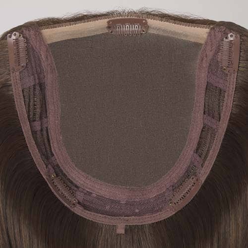 Top piece for hair enhancement with a large monofilament base.