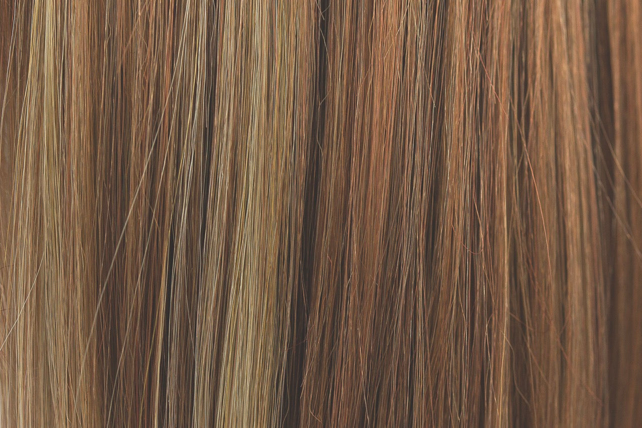 Ginger Snap | A highlighted and low-lighted color that has a rich coppery gold brown base, with many contrasting weaves of amber blond, cool coppers and ginger and pine undertones.