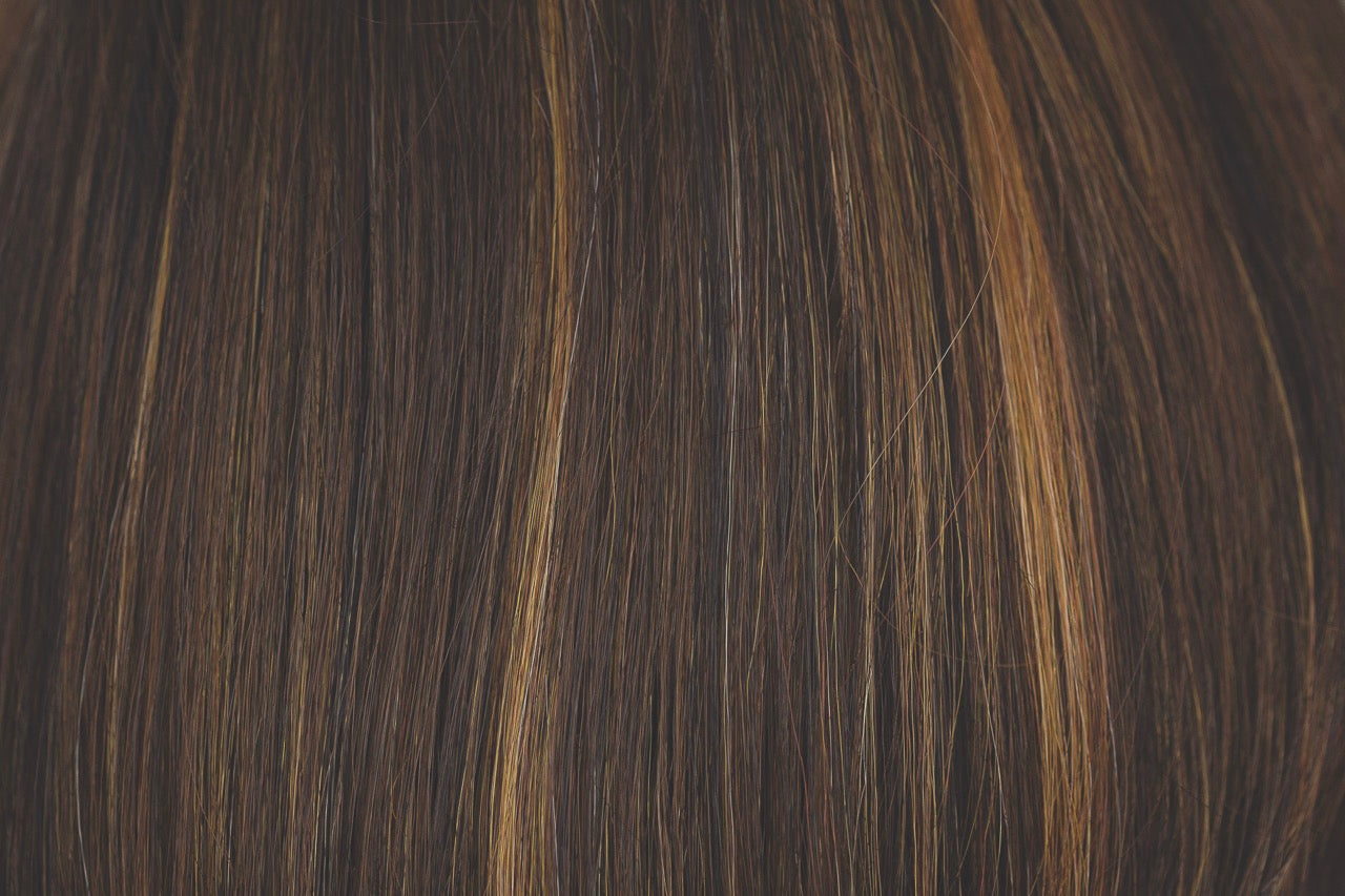 Chocolate Swirl | Dark Brown Base with Light Auburn and Honey Blonde 50/50 highlight | Base: 6 HL: 27 and 27C