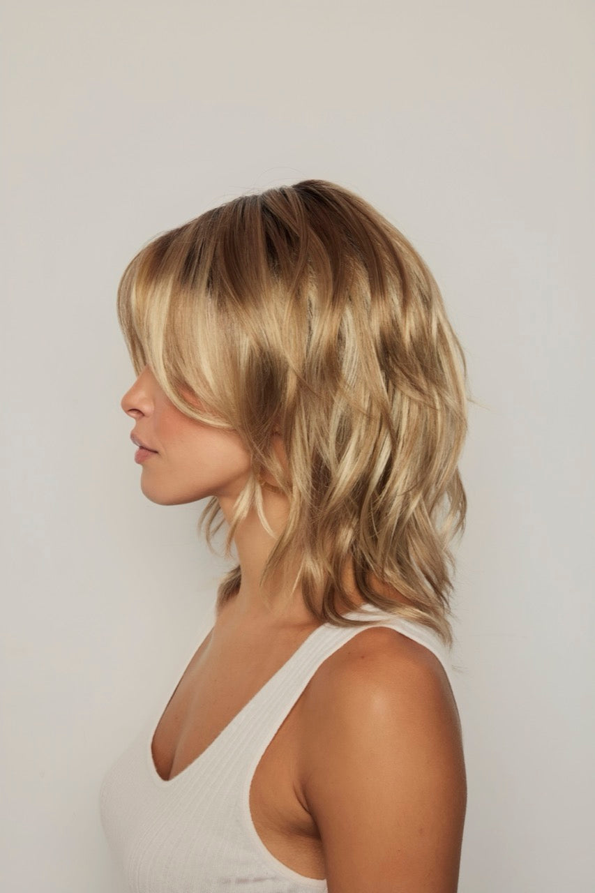 Alicia from our Orchid Collection is a mid-length synthetic wig. This wavy ready-to-wear style showcases effortless water waves that deliver a stylish yet relaxed appearance. The laid-back texture blends casual ease with a touch of elegance, making it a versatile choice for any occasion. Alicia features a lace front and lace part cap construction, offering a natural-looking hairline and realistic parting. Adjustable tabs in the back-nape area ensure a secure and comfortable fit. Crafted with high-quality synthetic fibers, Alicia combines fashion-forward design with everyday wearability.
