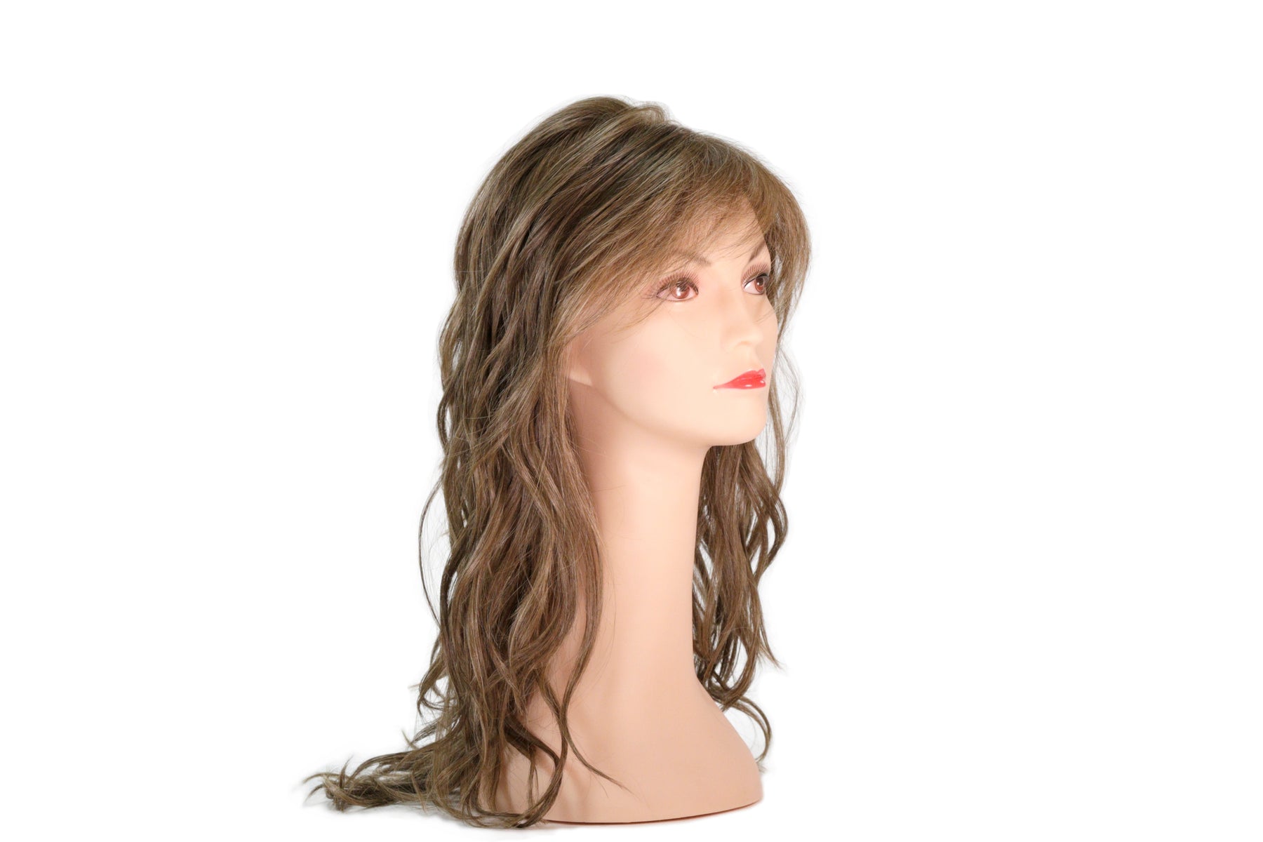 Long layers of shaped beach waves that tumble below the shoulder with feathered bangs and a double hand smooth silky top. Designed with a sheer monofilament top and lace front for an undetectable hairline and all day, every-day comfort.