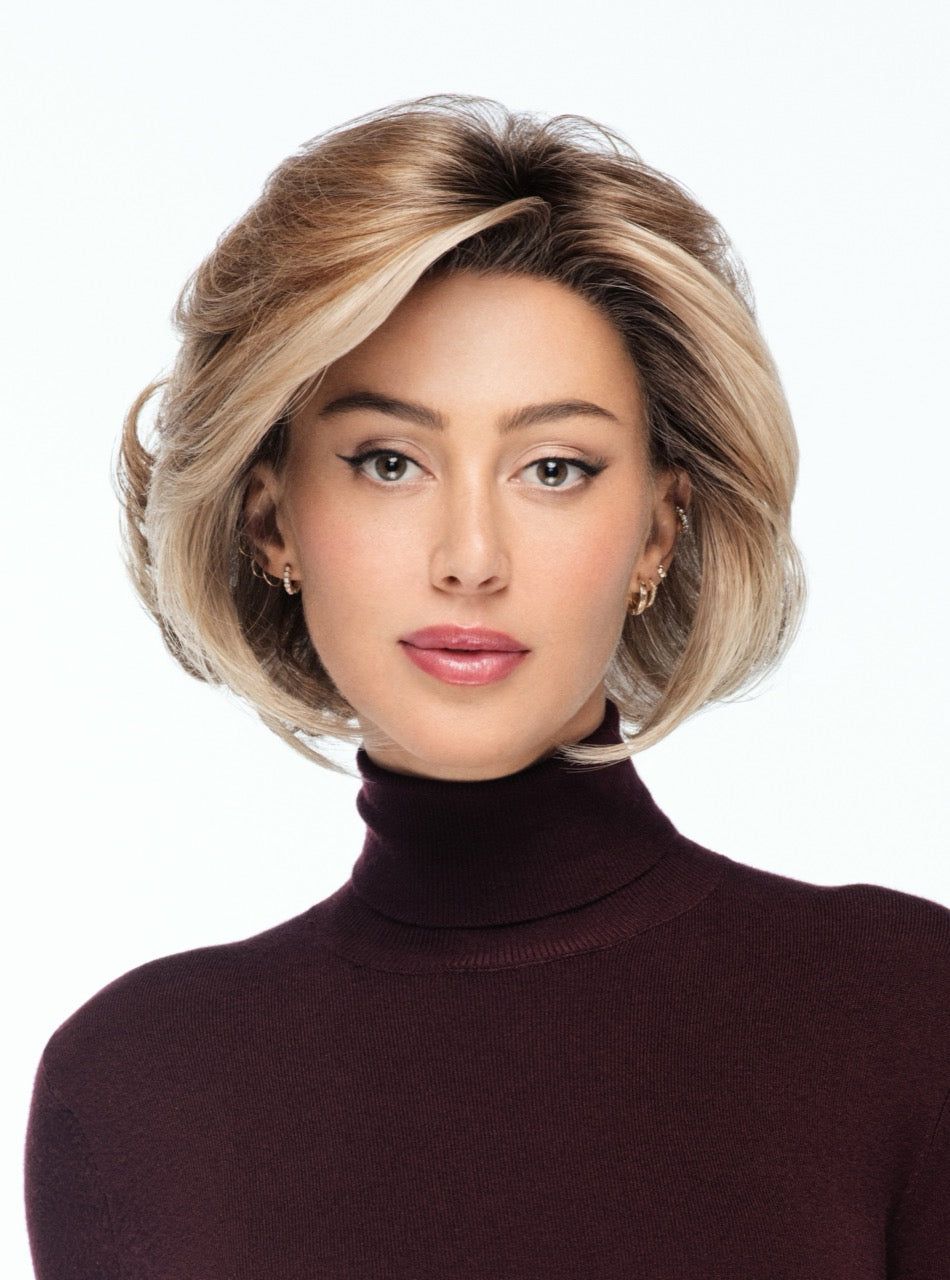 Introducing Charlotte Realistic, a Short Mid-Length Multi-Textured Tousled Bob, now reimagined for today’s lifestyle. This updated classic wig is lighter, more manageable, and more realistic looking than ever before, while still retaining its signature elegance. With soft, expertly layered tousled multi-dimensional waves that radiate sophistication, she has enough length to brush behind or over your ears. Perfectly crafted with TressAllure’s® Look Fabulous® Realistic Lite, the lightest wig fiber in the world, heat-friendly fibers that mimic the natural texture and movement of fine lustrous ready -to-wear hair, that can be customized to add volume and waves. The meticulously hand-knotted top and hairline blend seamlessly with your own hair line and is completely undetectable and allows for versatile parting. “It feels like the hair is growing right out of your scalp”. Welcome to the future of unparalleled comfort and ease of wear.