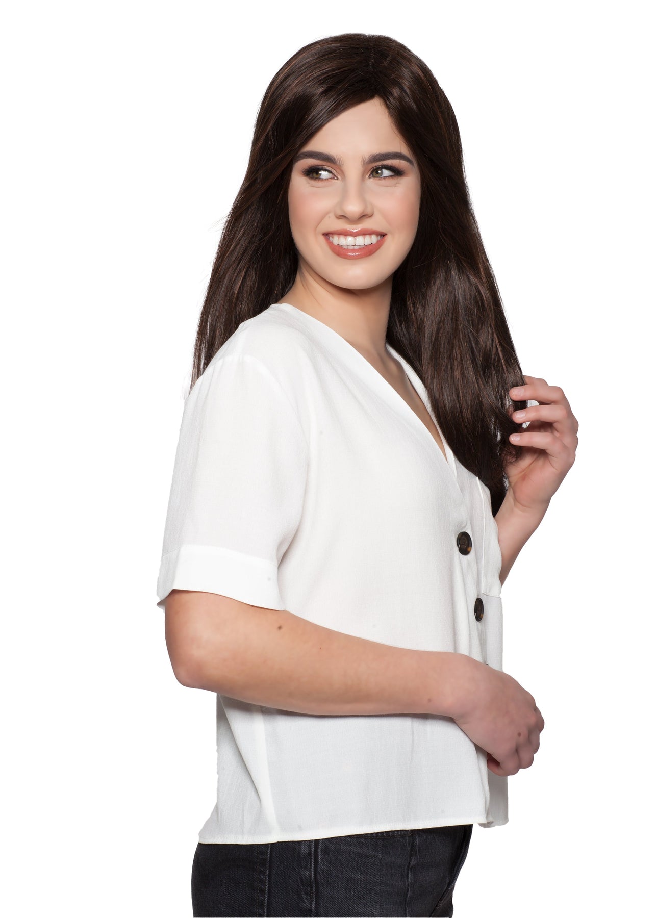 I'm in love. I've been experimenting with wigs for the past 2 years. I finally found one that's totally right for me. It's Cruise Control by Raquel Welch in Iced Cafe Latte! I love that it's partially hand-tied and the fibers are so silky. Being overall straight and heat friendly makes it super easy to maintain. The length just barely touches my shoulders. Super easy to maintain and a wig that I wear daily. Feels so good!