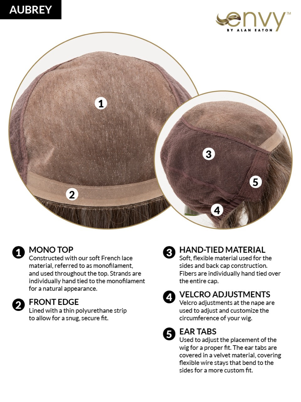 Aubrey by Envy Wigs is a sleek, short pixie wig with nape-hugging precision and natural movement. Crafted with a monofilament top and hand-tied cap, its exclusive human hair and heat-friendly fiber blend allows endless styling versatility, heat resistance, and a beautifully realistic finish for effortless, everyday elegance.
