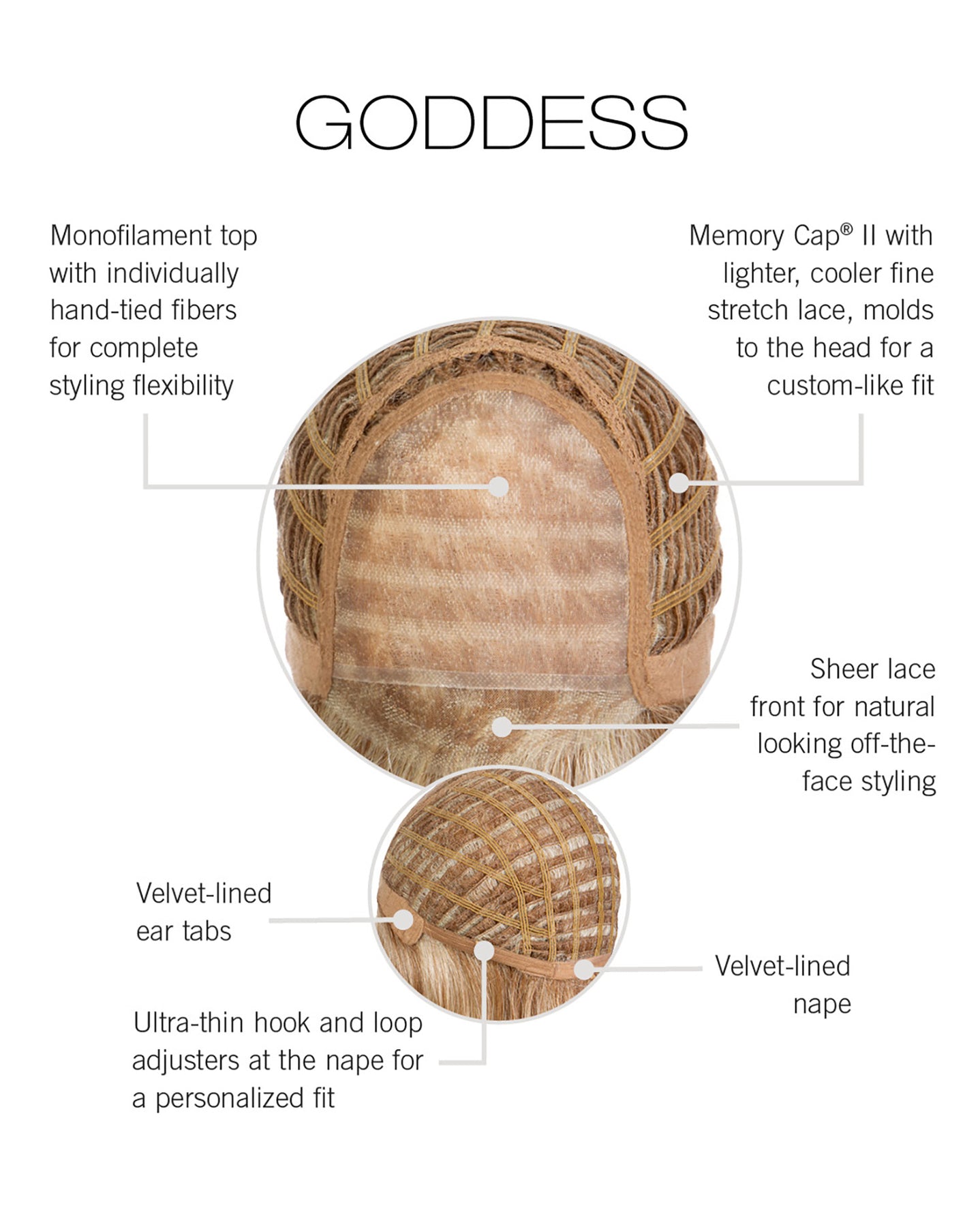 With a Sheer Indulgence™ lace front for the option of off-the-face styling and a monofilament top for varied parting choices, this barely waved, layered, shoulder length silhouette can also be curled for a more dramatic effect.