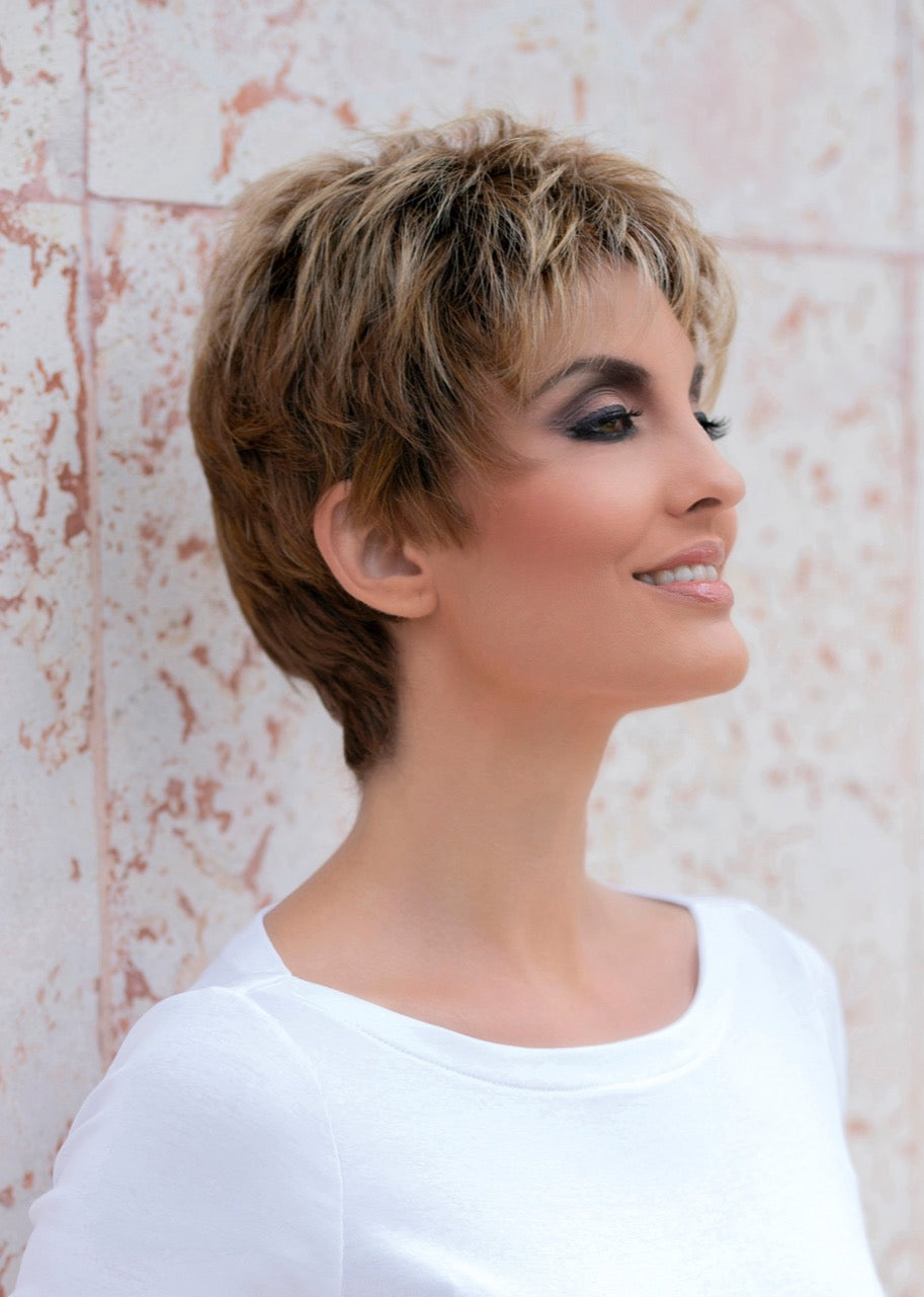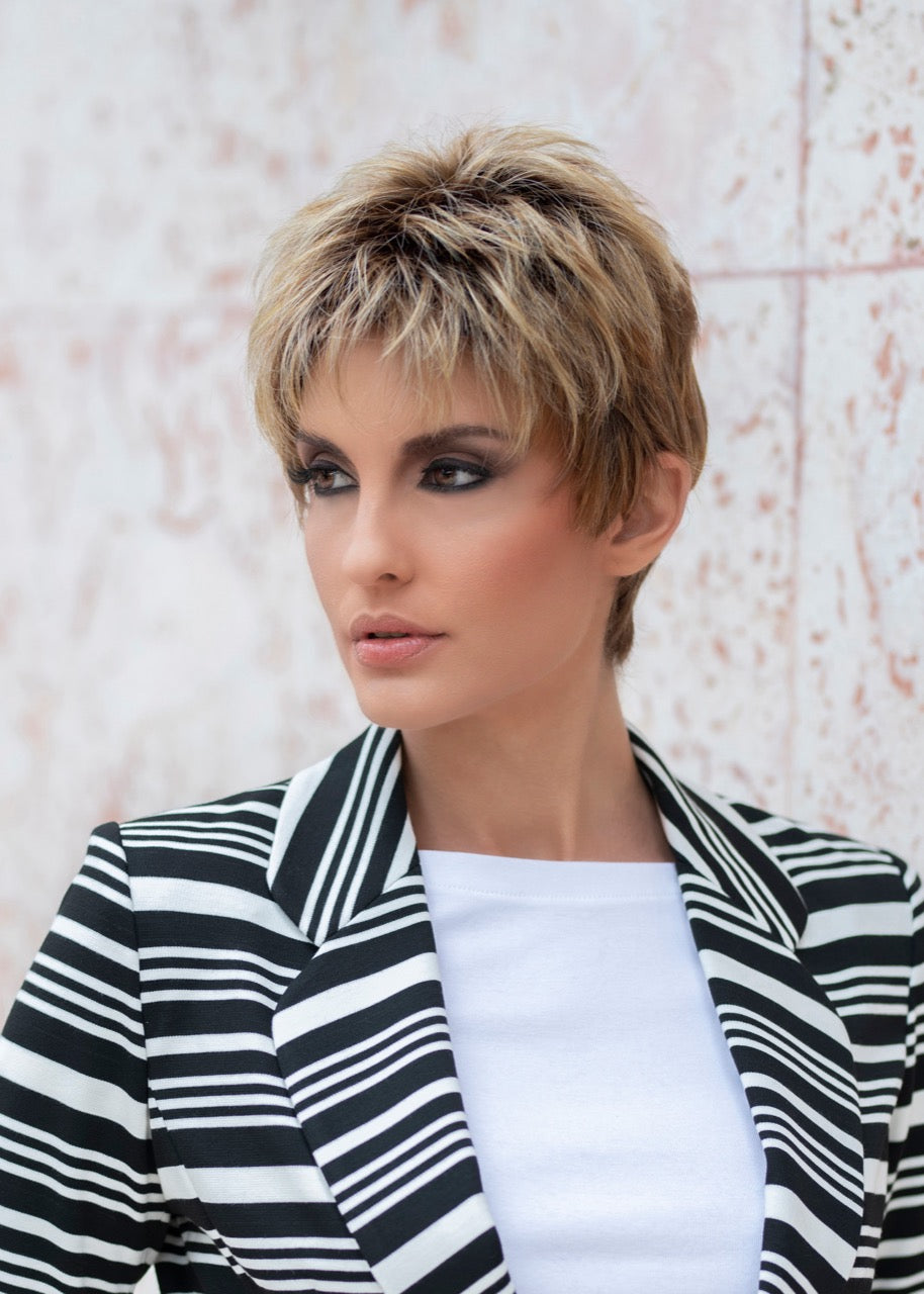 A sophisticated boy-cut designed with textured spiky layers and an open top construction for breathability. Style it up or comb it down for a less airy appearance. Versatile styling at its best.