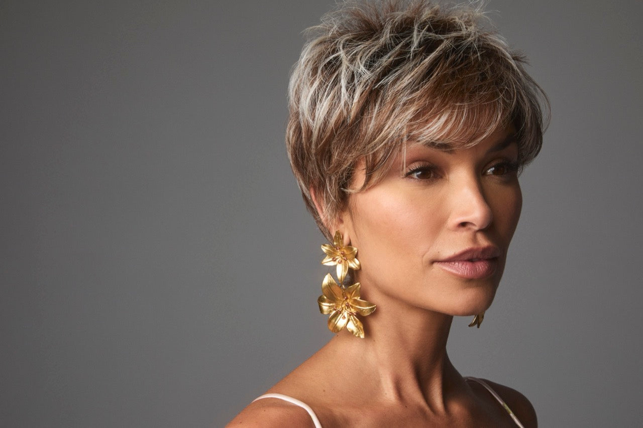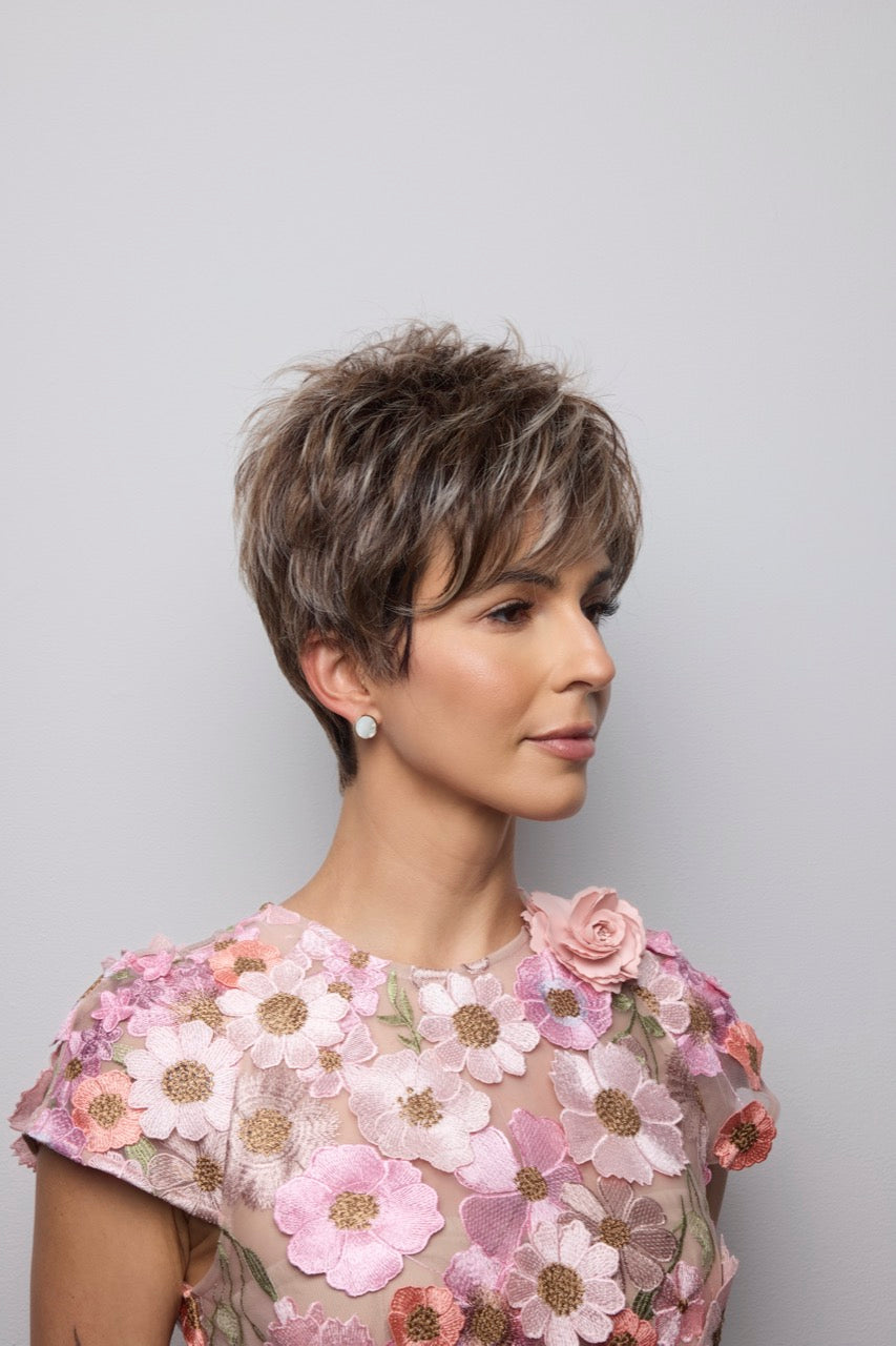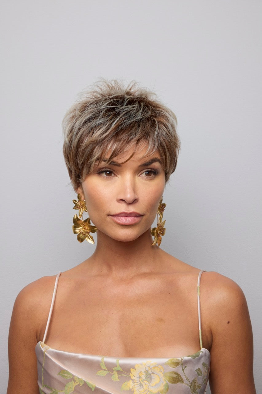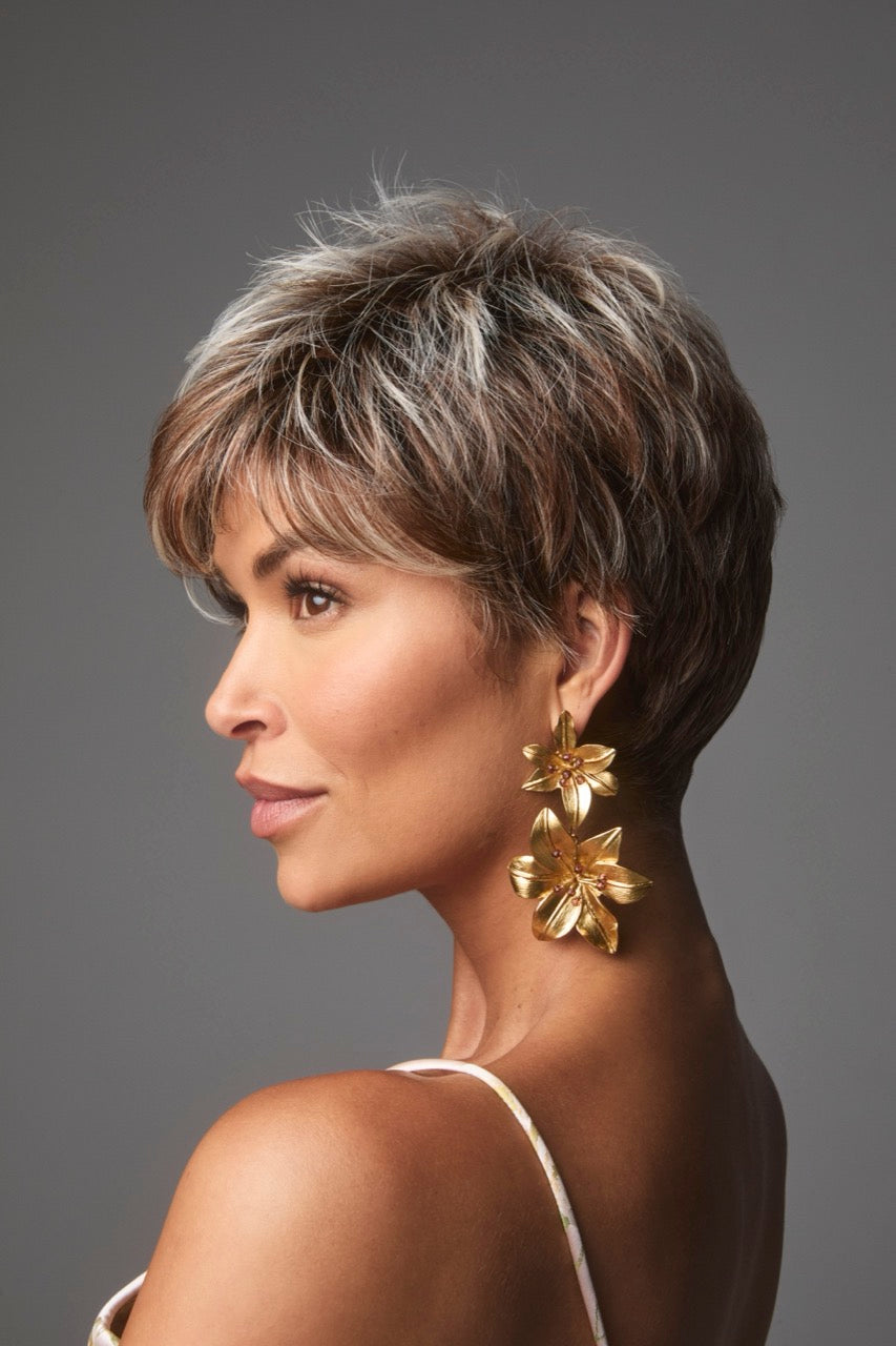 Rin from our Noriko Collection is a short-length, heat friendly wig. This straight, ready-to-wear pixie features a textured cut with a sleek, longer fringe for a stylish, modern look. Rin is machine made with an extended lace front, providing a natural hairline and versatile styling options. Adjustable tabs in the back nape area ensure a secure and comfortable fit. The result is a comfortable fit with a natural look that is both fashionable and easy to wear.