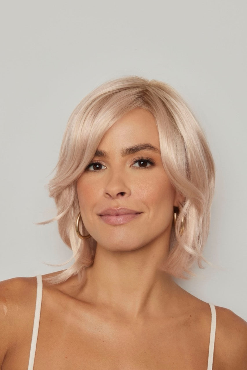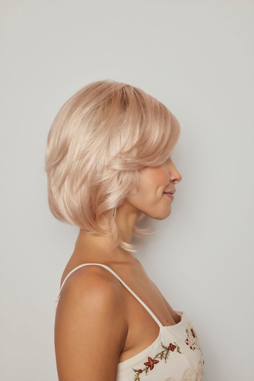 Sheena from our Orchid Collection is a short-length synthetic wig. This straight ready-to-wear style is a refined side-parted bob with a sleek, blown-out finish. The voluminous texture provides lush movement and vibrant bounce, bringing energy to its polished silhouette. Sheena’s elegant shape flatters a variety of face shapes while offering a contemporary twist on a classic look. It features a lace front and lace part cap construction for a natural appearance and styling versatility. Adjustable tabs in the back-nape area allow for a secure and comfortable fit. Crafted with high-quality synthetic fibers, Sheena delivers both modern sophistication and everyday wearability.