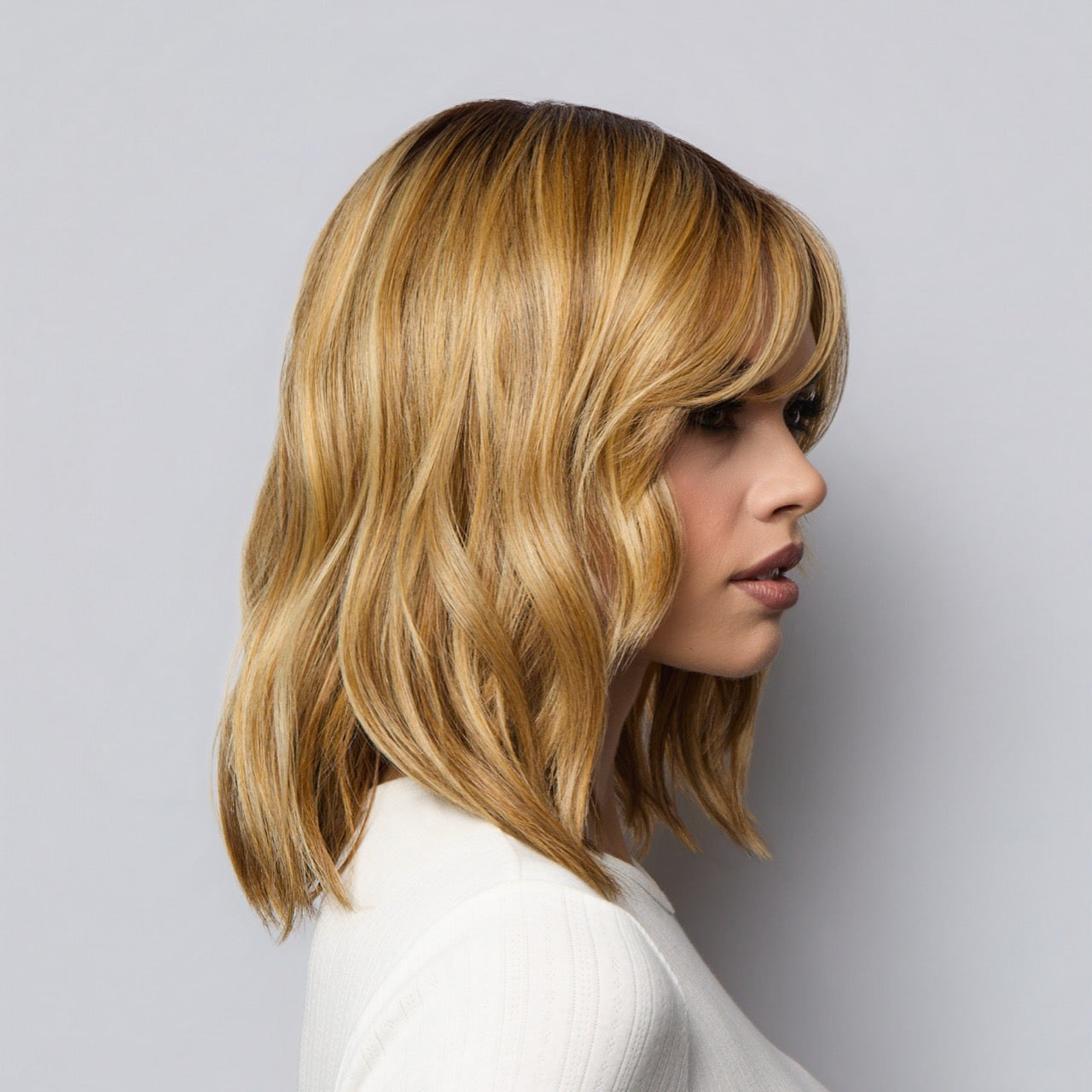 Frannie wearing Smooth Wavez in Snowy Umber-R